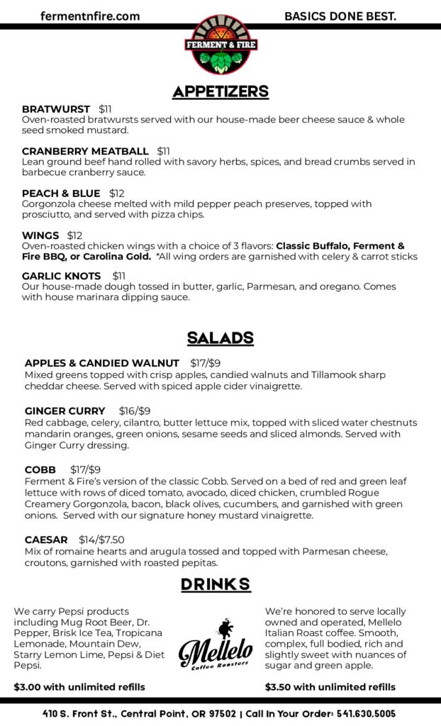 Ferment & Fire is more than a place—it’s a promise. A promise to keep things simple, soulful, and seriously delicious. We’re proud to be locally owned, fiercely detail-driven, and deeply committed to delivering food and drink that brings people and families together again and again.